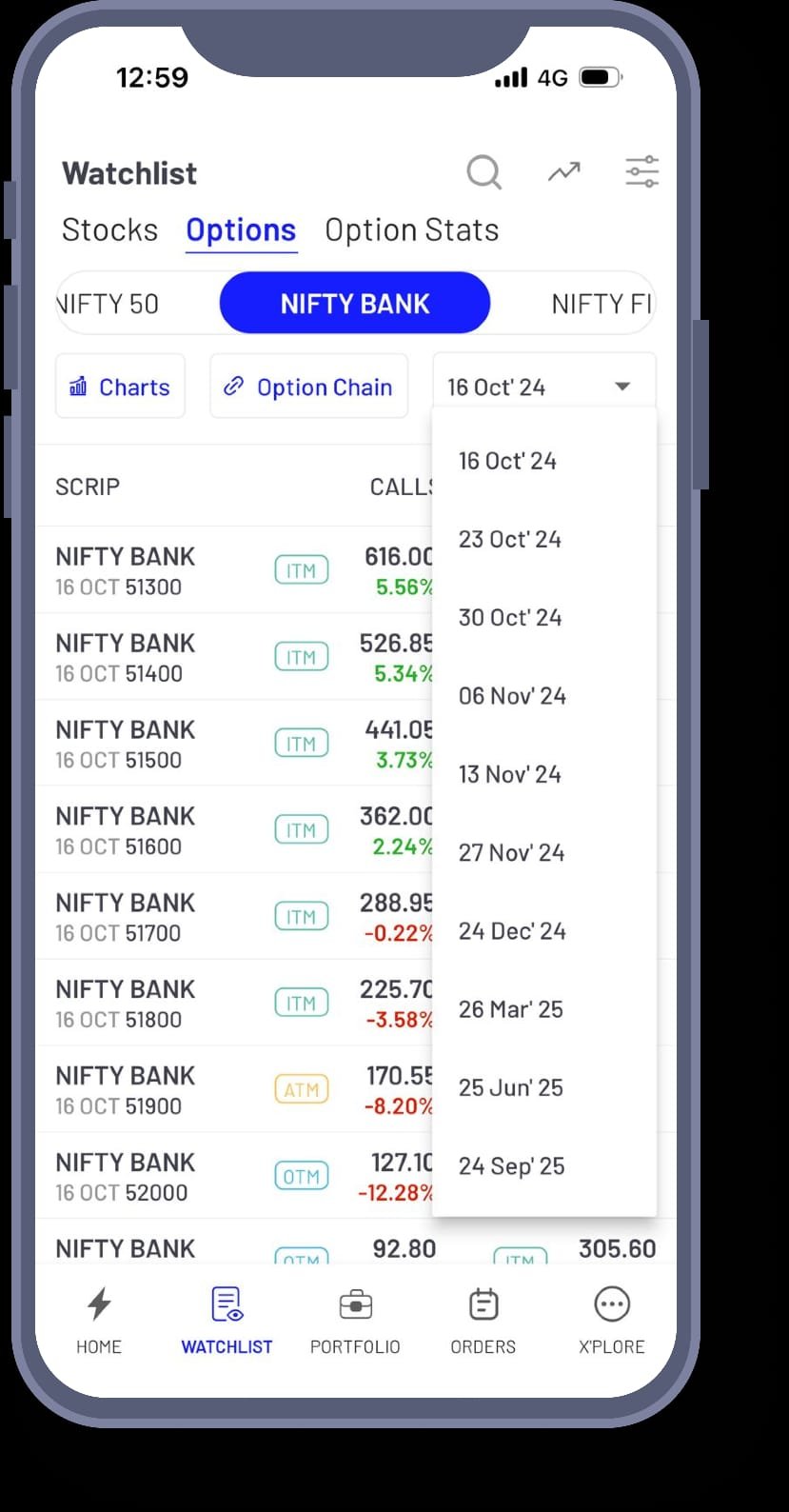 The Options Watchlist provides access to six strike prices for both out-of-the-money (OTM) and in-the-money (ITM) options across major indices, allowing traders to identify optimal entry and exit points easily.